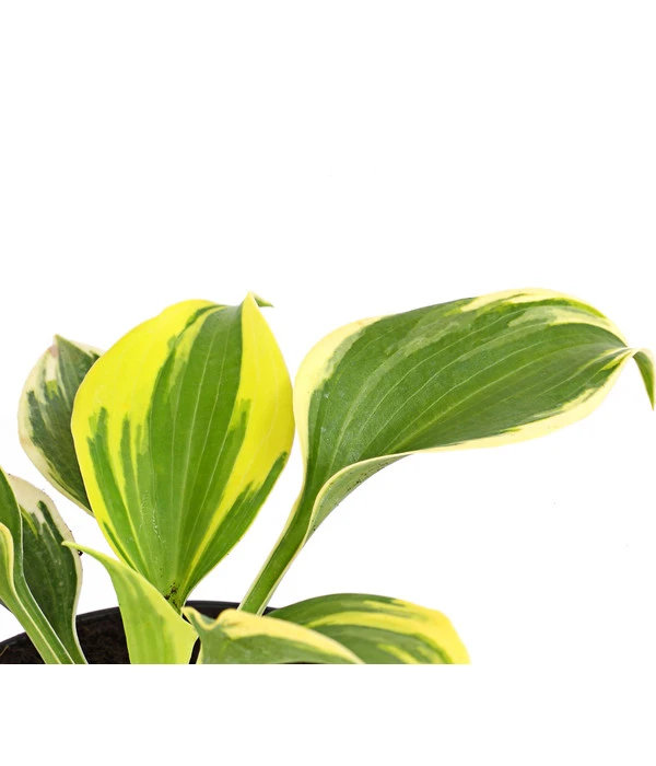 Jede Farbberatung wird es bestätigen: Gelb und Blau ist eine Kombi, bei der Frische und Wärme eine reizvolle Liaison eingehen und gute Laune verbreiten. Ob das auch die Blaue Gelbrand-Funkie ‘Ben Vernooy®‘ erfahren hat, als sie sich bei der Verteilung der Blattfarben dafür entschieden hat? Zugegeben: Das Blau im Inneren ihrer typisch herzförmigen Blätter ist nicht gerade Azurblau, sondern bläulich schimmernd, dafür kann der gelbe Rand aber locker als Sonnengelb durchgehen. Kein Wunder, dass die Hosta im Jahr 2012 sogar einen Preis für dieses tolle Farbpiel bekommen hat. Mit 40-50 cm gehört sie zu den halbhohen Blattschmuckstauden, die mit der Zeit einen schönen, kräftigen Horst entwickeln, mit dem sie vor allem im lichten Schatten leuchtende Farbtupfer auf Beete und Rabatten setzt. Und trotz des dekorativen Blattkleids lässt es sich die Funkie nicht nehmen, Ihnen im Juni und Juli zierliche, lilafarbene Blüten zu präsentieren, die den dekorativen Effekt nochmals steigern. Suchen Sie gleich ein passendes Plätzchen und lassen die Blaue Gelbrand-Funkie ‘Ben Vernooy®‘ dort ihr Farbenschauspiel aufführen!