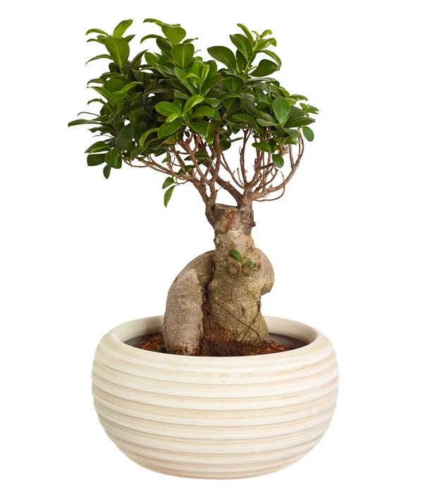 Die Bonsaikultur ist eine uralte Kunst, die ihren Ursprung in Fernost hat, seit einigen Jahren aber auch hier zahlreiche passionierte Pflanzenliebhaber fasziniert. Denn einen Bonsai zu pflegen bedeutet mehr, als ihn zu gießen und zu düngen; ein Bonsai-Gärtner erschafft vielmehr zusammen mit der Natur ein einzigartiges Pflanzen-Kunstwerk, das in jedem Raum vom ersten Moment eine ganz besondere Atmosphäre schafft. Ein harmonisches Abbild der Natur im Miniformat, aus knorrigem Stamm, Ästen und glänzend dunkelgrünen Blättern. Die Chinesische Feige ‘Ginseng‘ ist ein schnellwüchsiger und relativ anspruchsloser Baum, der sich bestens für Bonsai-Einsteiger eignet. Lassen Sie die Chinesische Feige ‘Ginseng‘ einen Hauch von Fernost bei sich verbreiten und entdecken Sie dabei ein neues hochinteressantes Hobby für sich!