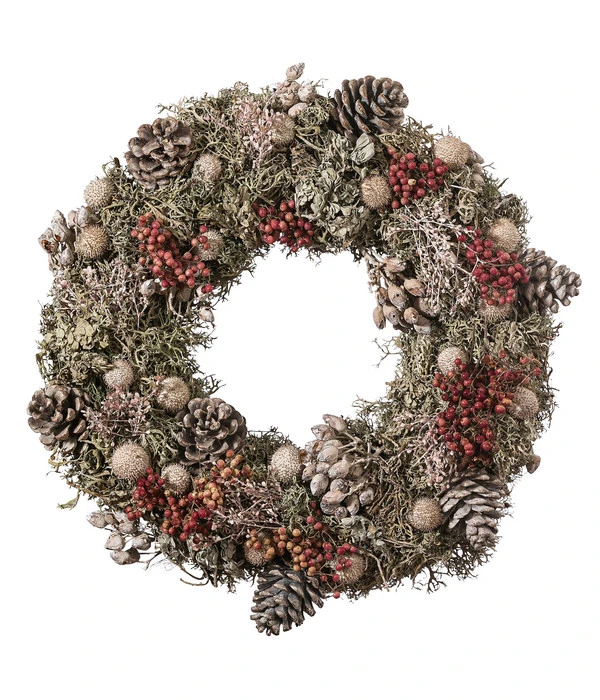 Traditionelle Tannenzapfen und skurrile Samenkapseln, Reisig und Flechten, die aussehen, als seien sie vom ersten Frost überhaucht – diese und ähnliche Dinge könnten Sie tatsächlich auf einem Spaziergang durch den heimischen Herbstwald finden und sammeln. Was Sie dort aber nicht finden würden, sind die dekorativen Pfefferbeeren, die im Kranz Pepper dekorative Akzente setzen. Die Pfefferbeeren wachsen nämlich weit weg von uns, und zwar an Pfefferbäumen in Peru und weiten Teilen Süd- und Mittelamerikas, haben sich bei uns aber einen festen Platz im kreativen Dekobereich wie auch in der Gewürzküche erobert.