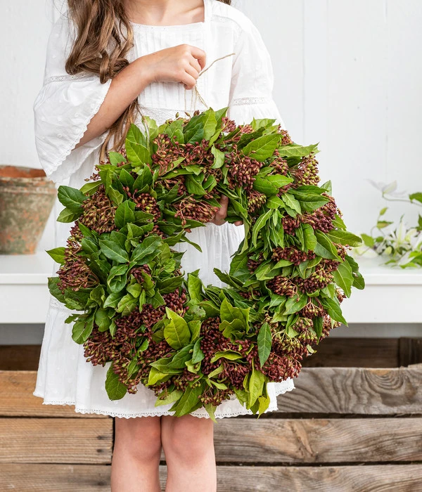 Nicht umsonst gehört der Schneeball-Strauch zu den Klassikern der Floristik. Seine ballförmigen Blütenstände strahlen im Sommer mit fabelhafter Pracht und werden gerne zur Hochzeitsdeko verarbeitet. Verwenden Sie den Dehner Kranz Viburnum ganz klassisch als Haustürschmuck oder Tischschmuck. Auch zur Weihnachtszeit – schön festlich verziert mit einer Lichterkette – wird er zum echten Blickfang an Ihrer Eingangstür. Bestellen Sie ihn am besten gleich hier online. Den angenehmen Duft der frischen Pflanzenbestandteile erhalten Sie gleich noch mit geliefert.