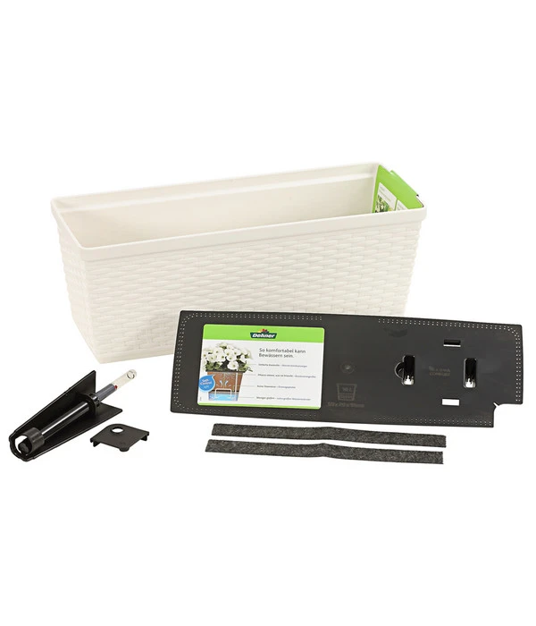 Sie erhalten unseren Dehner Kunststoff-Flechtkasten Dallas in verschiedenen Längen und sind somit flexibel in Ihrer Balkon- und Fensterbrettgestaltung. Er ist optisch ansprechend gestaltet, aber die Benutzerfreundlichkeit ist dabei stets im Blick geblieben. Der Dehner Kunststoff-Flechtkasten Dallas ist zum direkten Pflanzen geeignet und sofort verwendbar. Dank des eingebauten Bewässerungseinsatzes vermeiden Sie gefährliche Staunässe in der Blumenerde. Vor Austrocknung warnt Sie ein integrierter Wasserstandsanzeiger.