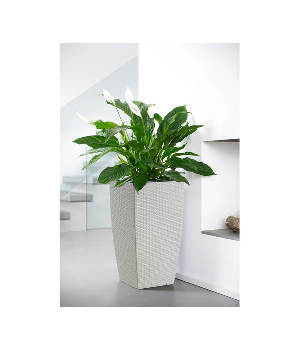 Er ist nicht irgendein Pflanzgefäß, der attraktive Pflanztopf. Denn mit seiner dekorativen Flechtoptik wirkt er fast schon wie ein Möbelstück auf Terrasse oder Balkon. Er hat eine edle wohnliche Ausstrahlung und harmoniert mit urigen Holzmöbeln genauso wie mit modernem Alu oder einer Terrassenmöblierung aus Polyrattan. Setzen Sie mit dem Dehner Kunststoff-Flechttopf Dallas noble Akzente auf Ihrer Terrasse, vor dem Hauseingang oder gar in der Wohnung. Denn auch dort passt er hervorragend hinein. Die elegant hohe Säulenform wirkt modern und zeitlos gleichermaßen und verleiht Ihren schönsten Pflanzen eine ganz neue optische Wirkung.