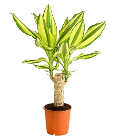 Sie würden sich gerne mit imposanten Grünpflanzen umgeben, haben aber noch keine Erfahrung damit? Dann können wir Ihnen den Drachenbaum ‘Yellow Coast‘ empfehlen. Diese Grünpflanze entfaltet den ganzen Zauber eines exotischen Blattwerks und ist dabei wunderbar robust und anspruchslos. Drachenbäume haben ihre Heimat in den subtropischen bis tropischen Gebieten Asiens, Afrikas und den Kanarischen Inseln, wo sie zu imposanten Bäumen bis 20 m Höhe heranwachsen. Sie sind allerdings nicht wirklich Bäume, sondern nur baumähnliche Pflanzen aus der Familie der Spargelgewächse. Die langen, oft überhängenden Blätter sind bei vielen Dracaena-Sorten dunkelgrün, die ‘Yellow Coast‘ aber präsentiert sich mit überwiegend aufrecht wachsenden Blättern, deren glänzend dunkelgrüner Farbton mit goldgelben und hellgrünen Streifen durchzogen ist, die wirken, als hätte sie ein Maler mit lockeren Pinselstrichen verteilt.