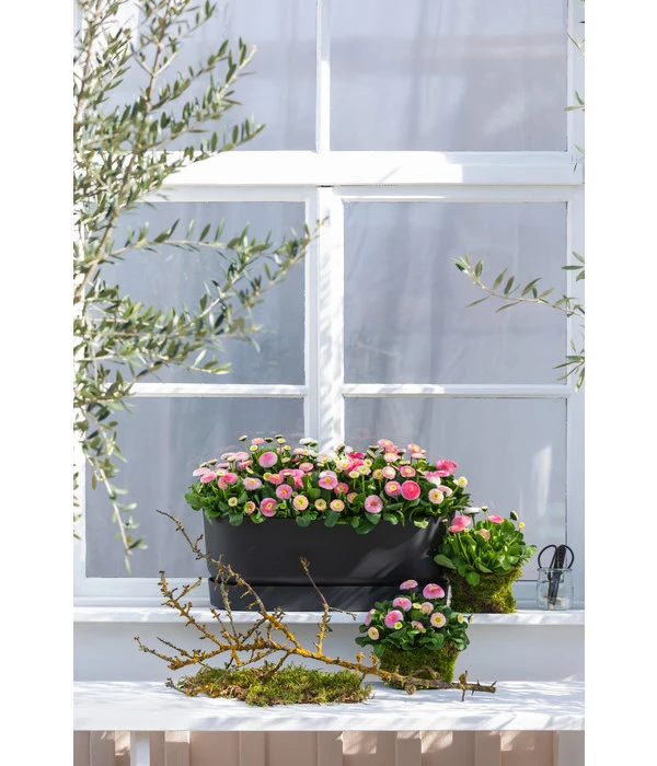 Der Blumentopf Greenville der Marke elho wurde aus Kunststoff gefertigt. Dieses Material bietet Ihnen gleich mehrere Vorzüge. Zum einen ist es robust und langlebig, zum anderen überzeugt es durch das geringe Eigengewicht, sodass Sie den Topf ganz leicht umstellen können. Nicht zuletzt dürfen Sie sich über die Frostbeständigkeit des Kunststoff-Topfes freuen. Dazu müssen Sie lediglich Staunässe vermeiden. Auf diese Weise können Sie den Blumentopf ganzjährig draußen, beispielsweise auf dem Balkon verwenden. Sichern Sie sich diese Vorteile und bestellen Sie jetzt online!