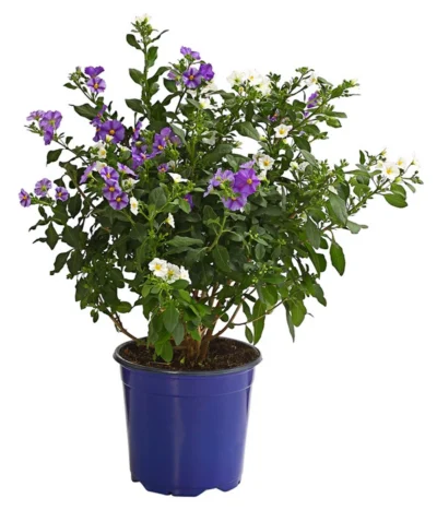 Der aus Südamerika stammende Enzianstrauch, gehört genauso wie die Kartoffel zu der Familie der Nachtschattengewächse. Deshalb ist er hierzulande auch oftmals unter Namen Kartoffelstrauch bekannt. Seine weiß-blaue Blütenpracht erfreut das Auge von April bis Oktober mit unzähligen Blüten. Der buschig wachsende Enzianstrauch verzaubert jeden Sitzplatz auf Balkon oder Terrasse, ausgepflanzt im Garten geht natürlich auch, bedenken Sie aber dass die Pflanze nicht winterhart ist und somit jedes Jahr neu ausgepflanzt werden müsste.