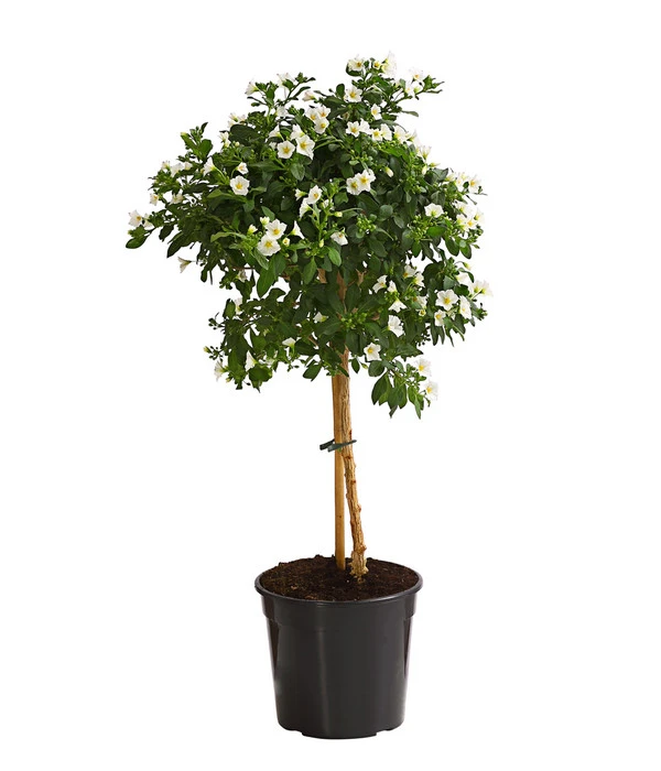 Holen Sie das Stämmchen noch vor dem ersten Frost zurück ins Haus. Es kann an einem hellen Platz, der möglichst nicht wärmer als 10°C ist, überwintert werden. Die Wassergaben können Sie dann der Temperatur anpassen, der Wurzelballen sollte aber selbst über den Winter nie austrocknen. Die Triebe der starkwüchsigen Kübelpflanze sollten dann im Frühjahr, vor dem Neuaustrieb eingekürzt werden. Da sich der Lycianthes im Laufe der Zeit die meisten Nährstoffe aus der Erde geholt hat, ist es wichtig, ihn alle zwei Jahre im Frühjahr in einen größeren Topf mit frischer Erde zu pflanzen.
