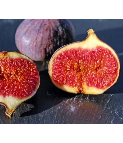 Die Echte Feige stammt ursprünglich aus Asien und ist mittlerweile weltweit bekannt. Heutzutage verbindet man sie hauptsächlich mit dem Mittelmeerraum, wie zum Beispiel Griechenland. Dekorativ sind vor allem die Blätter der Pflanze. Sie sind ledrig, groß und erinnern an eine gespreizte Hand. Auch die hellgraue Rinde ist ein wahrer Blickfang. Doch die Feige kann mehr als optisch überzeugen, denn sie bringt auch leckere Früchte hervor. Feigen sind bis zu 8 cm groß, sehr süß und violett. Die dünne Schale ummantelt ein rosarotes Fruchtfleisch mit kleinen Samenkernen. Die Schale kann bei Feigen mitgegessen werden. Ob die Früchte reif sind, erkennt man wenn die Schale bei Druck etwas nachgibt. Die Früchte können frisch verzehrt oder zu Kompott verarbeitet werden. Sie eignen sich auch als Trockenfrüchte aus dem Backofen. Auch gegrillt oder gebraten sind Feigen köstlich.