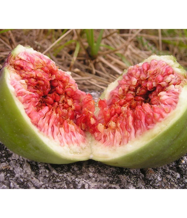 Am Ufer der Mayenne in Frankreich hat die Feigensorte ‚Jannot‘ Ihren Ursprungsort. Von dort hat die Feige den Namen ihres Gärtners erhalten, der sie kultivierte. Die gelb-grünen Früchte erstrahlen in voller Pracht im Juli und im Herbst. Schon beim ersten Biss werden Sie bemerken, dass das rote Fruchtfleisch das zart süße Aroma der Feige beinhaltet und Sie sich dieses Ereignis direkt auf Ihren Balkon, die Terrasse oder in den Garten holen können. Durch den schnellen Wachstum kann der Feigenbaum innerhalb von 10 Jahren eine Höhe von 6 Metern erreichen.