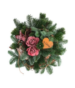 Abschied nehmen ist nicht leicht und wenn es der Abschied auf ewig ist, fehlen uns oftmals die richtigen Worte. Da ist es hilfreich, dass erfahrene Floristen wissen, wie man Gefühle der Liebe, der Dankbarkeit und innigen Verbundenheit auch über den Tod hinaus ohne Worte ausdrücken kann. Zum Beispiel mit den Grabstrauß in Liebe, der extra für die Feiertage Allerheiligen, Allerseelen und Totensonntag kreiert wurde. Die Zeit, die der inneren Einkehr und des Gedenkens an die Toten gewidmet ist. Auf einem Bett aus immergrünen Nobilis- und Kiefernzweigen wurden hübsche Eukalyptusglocken und zwei edle Rosenblüten arrangiert, die schon seit Jahrhunderten als das wohl schönste Symbol der Liebe gelten. Ergänzt wird das stimmungsvolle Bouquet mit einem kleinen Metallschild mit Edelrost-Patina, als wollte es zeigen, dass zwar Metall rostet, aber nicht die wahre, ewige Liebe. Schmücken Sie in diesem Jahr das Grab Ihrer Lieben mit dem Grabstrauß in Liebe und Sie können sicher sein, dass es den ganzen Winter bis ins Frühjahr gut aussehen wird.