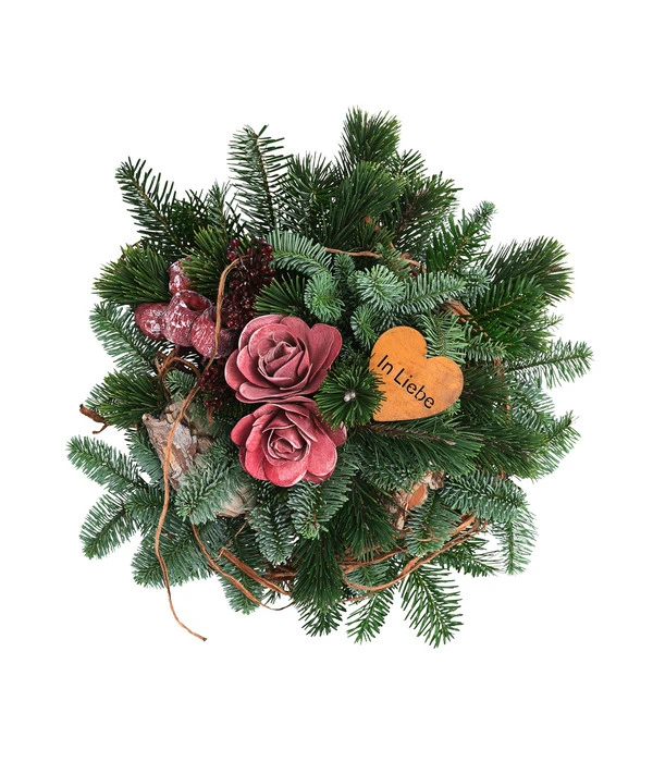 Mit dem Grabstrauß in Liebe haben Sie einen stimmungsvollen Grabschmuck entdeckt, der mit seinem Durchmesser von ca. 30 cm sehr gut auf ein Einzelgrab passt. Sie möchten noch ein bisschen mehr tun? Dann stellen Sie einen liebevoll gestalteten Engel aus Stein dazu, der Trost spendet und den ewigen Schlaf Ihrer Lieben bewacht. Und vielleicht ein Grablicht in Form einer stilvollen Laterne, die in dunklen Winternächten Licht spendet. So geschmückt wird die letzte Ruhestätte Ihres lieben Verstorbenen ein Ort der Erinnerung und des Trostes sein, den Sie immer gerne aufsuchen werden.