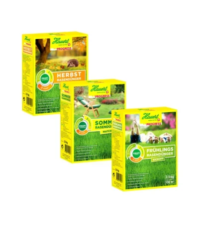 Hauert Progress 3x 2,5 kg Rasendünger-Set Frühling, Sommer, Herbst