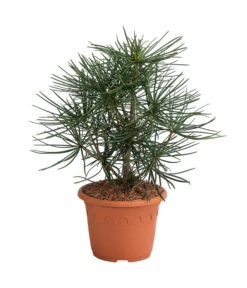 Der kegelförmige Wuchs, der von der Spitze bis zum Boden eng mit Ästen besetzt ist, und die imposante Wuchshöhe von 10 – 12 m machen die Japanische Schirmtanne zu einem immergrünen Highlight in der Gartengestaltung, das schon von weitem die Blicke auf sich lenken wird. Und tritt man näher, um dieses kiefernartige Nadelgehölz näher zu betrachten, entdeckt man das besondere Nadelkleid. Die Nadeln, die eigentlich zusammen gewachsene Doppelnadeln sind, präsentieren sich glänzend dunkelgrün, biegsam und ledrig und stehen in engen Quirlen schirmartig an den Triebenden zusammen, was dem Gehölz die interessante Optik verleiht. Die Zapfen der Japanischen Schirmtanne sind eher unscheinbar, bräunlich und fühlen sich ledrig an. Die Japanische Schirmtanne ist durch ihren prachtvollen Wuchs bestens geeignet, um als Solitär den Garten zu schmücken. Gerne wird die Tanne als Hausbaum in den Vorgarten gesetzt, sie kommt aber auch inmitten einer gepflegten Rasenfläche hervorragend zur Geltung, gerne in Gesellschaft von Rhododendren, Azaleen und Farnen.