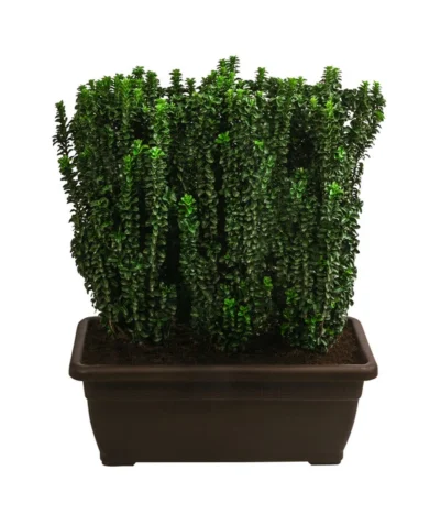 Stolz präsentiert das ursprünglich aus Asien stammende Ziergehölz ganzjährig seinen glänzend dunkelgrünen Blattschmuck, der ihn zu einem begehrten Schmuckstück in der Gartenanlage macht. Da die kleinen, rundlichen Blätter ein wenig an Buchs erinnern, wird ein Japanischer Spindelstrauch ‘Benkomasaki‘ in den letzten Jahren oft als Buchsbaumersatz gepflanzt, doch man tut diesem Ziergehölz Unrecht, wenn man ihn nur als zweitbeste Möglichkeit bezeichnet. Tatsächlich ist er ein wunderschöner Strukturgeber in der Gartenanlage, der auch im Winter Präsenz auf dem Beet zeigt; er lässt sich aber auch zu dichten, immergrünen Hecken kombinieren. Da ein Japanischer Spindelstrauch ‘Benkomasaki‘ zu den langsam wachsenden Pflanzen gehört, muss der Gärtner oft viel Geduld aufbringen, bis die Pflanzen die gewünschte Höhe erreicht haben. Der Euonymus japonicus, den wir Ihnen hier anbieten, hat aber mit einer Höhe von 80-90 cm exklusive Topf fast seine Zielhöhe erreicht, so dass er vom ersten Moment an einen beeindruckenden Hingucker bilden wird. Und weil gleich mehrere Pflanzen in einem Topf wachsen, haben Sie eine Hecke mit einer Länge von 80 cm. Wo darf der Japanischer Spindelstrauch ‘Benkomasaki‘ bei Ihnen für bewundernde Blicke sorgen?