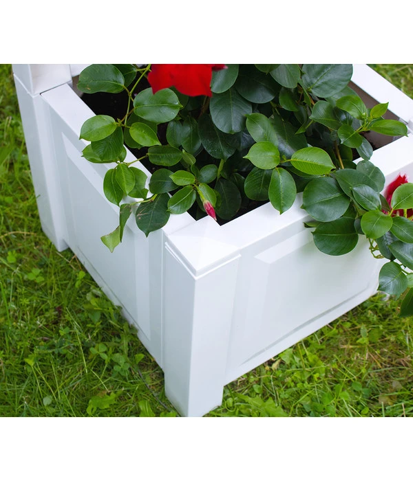 Eine prachtvolle Pflanze ist eine Zierde für jeden Balkon oder jede Terrasse. Noch besser kommt sie zur Geltung im richtigen Gefäß! Der KHW Kunststoff-Pflanzkasten ist hierfür ideal: Rankende Pflanzen können sich am integrierten Spalier entfalten, doch ist er selbstverständlich ebenfalls für niedrig bleibende Kübelpflanzen geeignet. Gefertigt ist er aus robustem, wetterfestem und pflegeleichtem Kunststoffmaterial. Geliefert wird der KHW Kunststoff-Pflanzkasten handlich in Einzelteilen und kann ohne zusätzliches Werkzeug in einfacher Montage direkt an Ort und Stelle aufgebaut werden. Mit seinen Grundmaßen von (B/T/H) 43 x 43 x 140 cm lässt er sich auch im kleinsten Garten unterbringen und passt sich wunderbar an die Gegebenheiten in Ihrem Garten an.