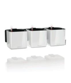 Die Entwickler des LECHUZA® CUBE Glossy Green Wall Home Kits haben dem Ensemble der würfelförmigen, leicht glänzenden Töpfe ein durchdachtes Bewässerungssystem mitgegeben, das Ihnen hilft, den Pflegeaufwand für die Pflanzen auf ein Minimum zu reduzieren. Dies gelingt durch den Einsatz von Spezialsticks, die vom Boden her in die Kulturtöpfe eingeführt werden und das notwendige Wasser direkt an die Wurzeln transportieren. Eine Wasserstandsanzeige informiert zudem über den nächsten Bewässerungszeitpunkt. Also holen Sie sich dieses topmoderne LECHUZA® CUBE Glossy Green Wall Home Kit am besten sofort.