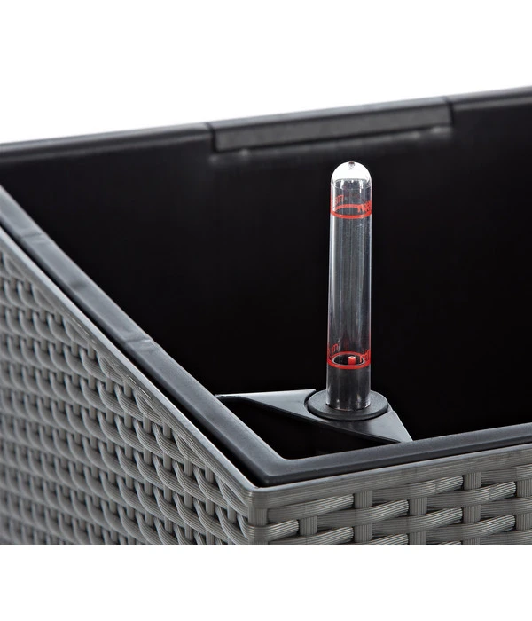 Hier dürfen wir Ihnen einen Klassiker aus der modernen Pflanzkübel-Serie von LECHUZAa® vorstellen: den Cubico Cottage Blumenkübel. Dank der elegant hohen Säulenform und der dekorativen Flechtoptik wird der LECHUZA® Kunststoff-Topf Cubico Cottage gerade für noble Inszenierungen auf Terrassen und in Hauseingangsbereichen sehr geschätzt. Doch edle Optik ist ja nur einer der Vorzüge am LECHUZA® Kunststoff-Topf Cubico Cottage, denn auch auf der Dimension Funktionalität ist dieses Pflanzgefäß ein wahrer Meister. Denn das Pflanzgefäß verfügt über ausgeklügelte „innere Werte“, die den Pflanzen ein Zuhause mit einem perfekten Wohlfühl-Klima bieten. Und auch die „äußeren Werte“ haben es in sich. Denn das dekorative Polyrattan-Geflecht ist natürlich absolut UV-beständig und witterungsstabil.