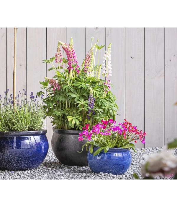 Stolz reckt die Lupine Westcountry ihre imposanten, zweifarbigen Blütenstände bis in eine Höhe von 100 cm und spielt so in fast jedem Beet die Starrolle, die sich der Aufmerksamkeit und Bewunderung aller sicher sein kann. Zumindest in der Blütezeit der Staude in den Monaten Mai und Juni. Das Besondere an dieser Lupinen-Züchtung sind die prachtvollen Blütenfarben, die neben dem klassischen Blau-Violett auch in Rot- und Orange-Variationen leuchten. Sogar rosa, reinweiß und gelb sind im Blütenreigen enthalten und verleihen der Sommerstaude eine beachtliche Fernwirkung. Die ursprünglich aus Amerika stammende Gartenstaude ist aber nicht nur eine beeindruckende Beet-Schönheit, sondern hat sich auch als angenehm unkompliziert erwiesen, die dem Gärtner kaum Arbeit, aber viel Freude macht. Und das viele Jahre lang. Und nicht nur für den Garten ist die Lupine Westcountry eine tolle Bereicherung, sie ist auch eine dankbare Schnittblume, die sich in der Vase lange hält und Sommerstimmung im Haus verbreitet.