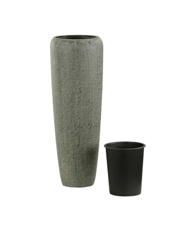 Dehner Polystone-Pflanzvase London, Rund, Grau, Ca. Ø34/H97 Cm