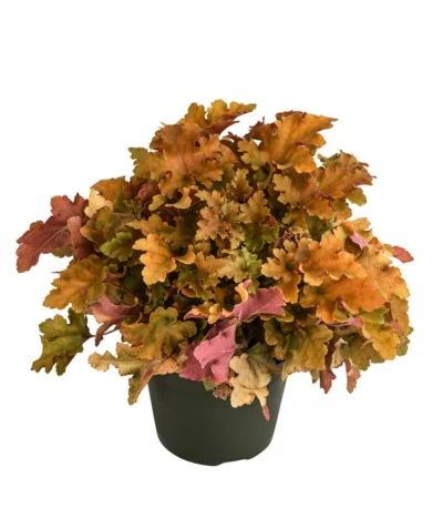 Wie schön Ihr selbst gestaltetes Staudenbeet ist! So voller Leben und ein Grünton ist schöner als der andere – außer dort, wo Sie sich für das Purpurglöckchen ‚Marmalada‘ entschieden haben. Denn es sticht aus der Masse heraus: mit seinem außergewöhnlichen Blattwerk, das oben orange-ocker und unten pink gefärbt ist. An dieser Blattschmuckstaude mit ihrer kontrastreichen Blattfärbung kann man nicht einfach vorbei gehen. Und die aufrecht horstig wachsende Pflanze legt in Puncto Optik sogar noch nach. Denn jedes einzelne Blatt verzaubert mit einer edel glänzenden Oberfläche sowie gekräuselter, gewellter Struktur. Daher auch die Bezeichnung Zottiges Silberglöckchen oder Silberglöckchen ‚Marmalada‘. Ein Farbakzent, der Ihnen fast das gesamte Jahr über erhalten bleibt, denn erst spät durchlebt die wintergrüne Pflanze eine kurze blattlose Phase. Mit einer Fülle von schneeweißen Blüten in Glockenform schmückt sie sich von Juli bis August. Setzen Sie mit dem Purpurglöckchen ‚Marmalada‘ also ganz nach Geschmack farbenfrohe, kissenartige Akzente, die besonders imposant wirken, wenn sie in Gruppen gepflanzt werden.