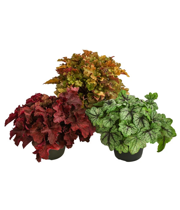 Je 1 x Heuchera ‘Boysenberry‘, Heuchera ‘Green Spice‘, Heuchera ‘Marmalada‘