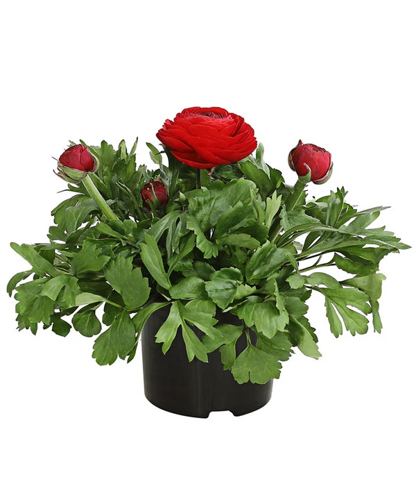 Die ursprünglich aus dem Orient stammende Ranunkel möchte zwar einen sonnigen bis halbschattigen Standort, dieser sollte aber vor praller Mittagsonne geschützt und der Boden locker und durchlässig sein. Halten Sie den Boden außerdem mäßig feucht und vermeiden Sie Staunässe. Möchten Sie die Knollenpflanze in Töpfen oder Kästen kultivieren, empfehlen wir Ihnen eine Drainageschicht am Boden anzulegen. Gerne nimmt die Ranunkel während der Blütezeit auch regelmäßige Düngergaben. Und wie für viele andere Blühpflanzen gilt auch für die Ranunkel: Das regelmäßige Entfernen verwelkter Blüten und gelber Blätter schenkt ihr neue Lebensenergie und sorgt für das Austreiben frischer Knospen.
