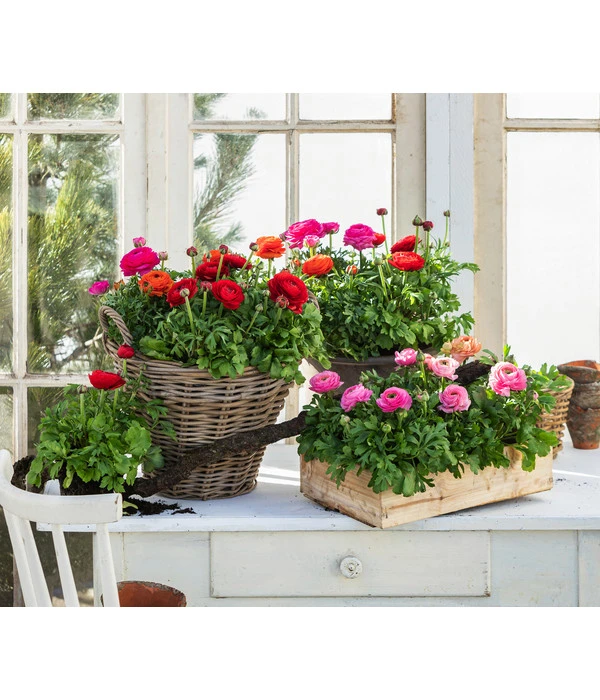 Ganz gleich, ob es sich um die Pflanzung im Beet oder in einer Schale geht – besonders prachtvoll wirkt das Arrangement, wenn Sie mehrere Ranunkeln zusammensetzen. Beliebt sind auch Kombinationen mit Tulpen, Traubenhyazinthen und Primeln, die mit anderen Blütenformen das farbenfrohe Potpourri beleben. Aber auch ein opulenter Strauß Ranunkel-Blüten in der Vase ist ein reizvoller Frühlingsschmuck im Haus. Schneiden Sie dafür die Ranunkeln in knospigem Zustand, dann wird der Strauß besonders lange halten.