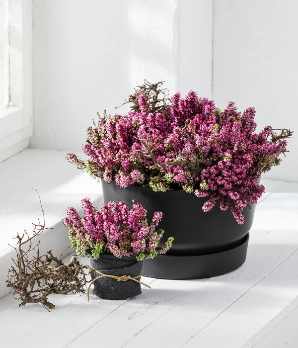 Die Heide liebt einen warmen und sonnigen bis halbschattigen sowie geschützten Standort. Zudem ist ein durchlässiger, sandig-humoser Boden oder ein lehmiges, schwach saures Substrat zu empfehlen. Tauchen Sie den Topf vor dem Pflanzen in Wasser, lockern Sie den Wurzelballen etwas und setzen Sie die Pflanze eher etwas tiefer in den Boden als zu hoch. Dann kräftig angießen. Da die Erika empfindlich auf Hitze und Trockenheit reagieren, sollten Sie den Boden nie ganz austrocknen lassen. Ist die Schneeheide aber erst einmal gut angewachsen, braucht sie nur wenig Pflege und verdrängt mit ihren dichten flachen Wurzeln sogar Unkraut.