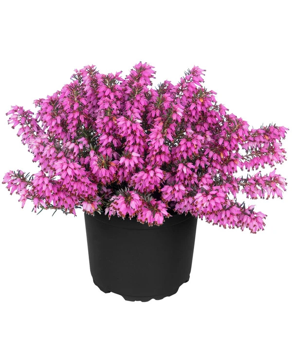 Erika-Pflanzen gehören zu den beliebtesten Gartenpflanzen und das ist kein Wunder. Denn gerade, wenn die anderen Pflanzen im Garten Blüten und Blätter abwerfen und in die Winterruhe gehen, kommt die Erika ganz groß raus. Mit ihren glockenförmigen Blüten in allen Variationen von Weiß über Rosa bis kräftig Pink setzt sie fröhliche Farbtupfer, die unsere nach Farben lechzenden Augen beglücken. Und wenn man ganz achtsam ist, wird man sogar einen leichten Honigduft wahrnehmen. Sieht und riecht man diesen Blütenzauber, dann versteht man auch, warum die Erika auch Schneeheide, Frühlingsheide oder Winterheide genannt wird. Der polsterförmige Zwergstrauch hat kriechende Zweige, wird etwa 10-30 cm hoch und 50 cm breit. Je nach Sorte und Wetterlage zeigt die Erika von Dezember bis in den April hinein ihre hübschen Blüten. Doch auch, wenn diese Heide nicht blüht, ist sie keineswegs unansehnlich. Sie zeigt ganzjährig ein grünes, nadelartiges Grün, das unter Kälteeinfluss auch bronzefarben wird.