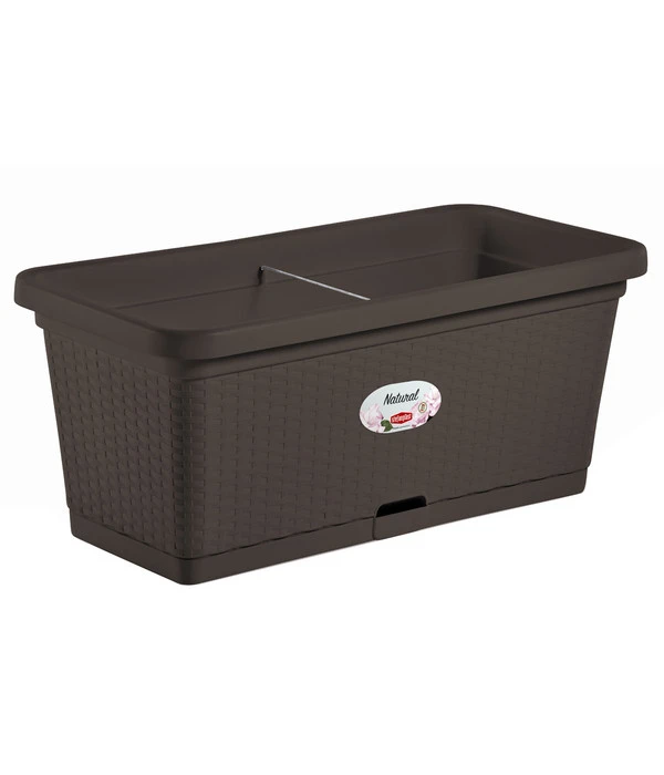 Zur Verschönerung Ihres Balkons mit Blumen eignet sich der braune Kunststoff-Balkonkasten mit seiner Größe von 80 x 40 x 34 Zentimetern hervorragend. Er bietet ausreichend Platz, um gleich mehrere Pflanzen im Kasten unterzubringen. Seine dekorative, moderne Flechtoptik sorgt für ein Highlight auf dem Balkon und lässt die Nachbarn neidische Blicke werfen. Der in Italien hergestellte braune Kunststoff-Balkonkasten ist frostbeständig und verhindert mit kleinen Öffnungen an der Seite die Bildung von Staunässe. Zudem stützt eine Halterung aus Metall den Außenrahmen und erzeugt dadurch zusätzliche Stabilität. Der robuste und formstabile Kunststoff des Blumenkastens hält widrigen Witterungsbedingungen stand und überzeugt durch Langlebigkeit.