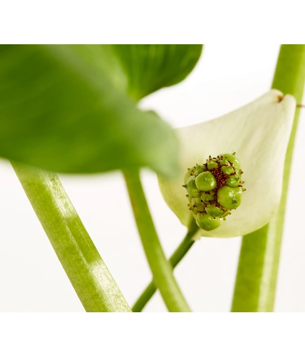 Auffälligstes Merkmal dieser dekorativen Pflanze sind die Blütenstände mit den typischen Hochblättern, wie man sie von vielen Mitgliedern der Aronstabgewächse kennt. Diese blütenähnlichen Hochblätter erscheinen zwischen Mai und Juli und zeigen eine strahlend weiße Innenseite und eine hellgrüne Außenseite. Bei der Sumpfcalla, die auch als Schlangenwurz oder Drachenwurz bekannt ist, handelt es sich um eine wertvolle Wildpflanze, die überall in der nördlichen Hemisphäre bis in die arktische Zone verbreitet ist. Bei uns kommt die mehrjährige Staude hauptsächlich am Rand stehender Gewässer und in Mooren vor, ist allerdings durch die Trockenlegung vieler Feuchtgebiete gefährdet, weshalb sie in Deutschland unter Naturschutz steht. Die Sumpfcalla, die Sie hier bei Dehner bekommen, stammt selbstverständlich aus einer Nachzucht, die den natürlichen Bestand nicht gefährdet. Neben den Blüten sind auch die roten, beerenartigen Früchte, die sich aus den Blüten entwickeln, ein hübscher Hingucker am Gartenteich.