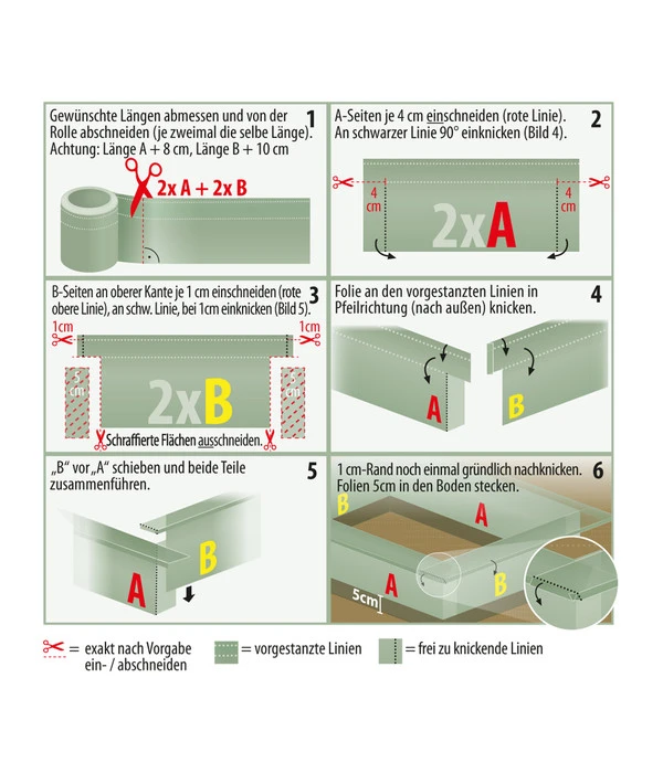 Diese Schneckenbarriere besteht aus einem 8 m langen und 20 cm hohen Kunststoffband, das Sie individuell auf Ihre Platzverhältnisse einkürzen können, je nachdem, welche Pflanzen besonders gefährdet sind. Messen Sie die Länge des Beetes, das Sie mit der Windhager Schneckenbarriere umgeben möchten, von der Rolle ab. Die oberen Kanten werden anschließend nach innen eingeknickt, ebenso die Seitenteile an den jeweiligen Enden. Dann werden die Seitenteile im rechten Winkel verschränkt und passgenau um das Beet gesteckt. Eine detaillierte Bedienungsanleitung liegt jeder Packung Windhager Schneckenbarriere bei, so dass Sie Ihre Beete sicher und schnell schützen können. Was alle Naturfreunde und Gärtner besonders schätzen werden: Die Windhager Schneckenbarriere ist ein biotechnisches Produkt, das ganz ohne Chemikalien oder gar Giftstoffe arbeitet, sondern die Schnecken ausschließlich auf mechanische Weise vom Beet abhält.