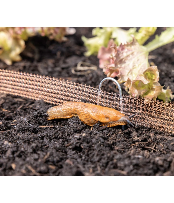 Der Schneckenzaun von Windhager nutzt Kupfergewebe, das bei den Schädlingen für ein unangenehmes Gefühl sorgt. Die Kupfer-Ionen reagieren chemisch auf den Schleim der Tiere, was die Schnecken auf ungiftige und unschädliche Weise verschreckt. Somit ist für eine tierfreundliche Abwehr gesorgt, die alle Schnecken im Außenbereich von den Pflanzen fernhält, aber sie nicht tötet. Sorgen Sie lediglich für eine lückenlose Umschließung mit dem Windhager Schneckenzaun und passen Sie die Länge flexibel mit einer Schere für die benötigte Länge an. Sagen Sie bye bye zu Fressschäden durch Schnecken an ihren Pflanzen und bestellen Sie sich gleich den ausgeklügelten Schneckenzaun der traditionsreichen Firma Windhager.