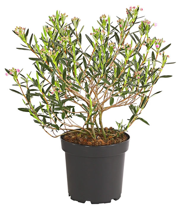 Dunkelgrüne, lederartige Blätter, deren Ränder partiell eingerollt sind, bilden das ruhige Tableau für den rosa-pinkfarbenen Blütentraum, mit dem Sie der Zwerg-Berglorbeer in den Monaten Mai und Juni überraschen wird. Und sicher wird die Anwesenheit des neuen Blütenstrauchs auch Ihre Nachbarn an den Gartenzaun locken, die sich fragen werden, um welche Pflanze es sich wohl handeln mag. Denn der in Kanada beheimatete Zwerg-Berglorbeer ist in deutschen Gärten noch nahezu unbekannt. Sorgen Sie also für Gesprächsstoff unter den Pflanzenfreunden und -kennern in Ihrer Nachbarschaft und setzen Sie mit diesem Ziergehölz einen außergewöhnlichen Blickfang in Ihren Garten! Selbst außerhalb der Blütezeit gibt der Zwerg-Berglorbeer mit seiner immergrünen Belaubung und dem buschigen, im Alter ausladenden Wuchs Beeten und Rabatten Struktur. Noch ein Vorteil, der es Ihnen erleichtern wird, einen Platz für das Ziergehölz zu finden: Er wird nicht viel größer als ca. 50 cm, so dass auch ein kleines Plätzchen ausreicht.