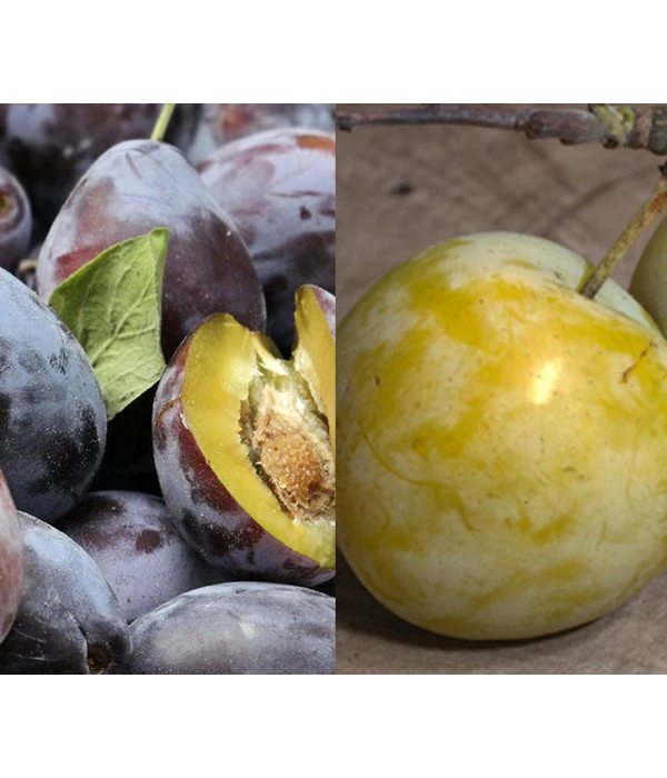 Die Sorte ‚Oullins Reneklode‘ stammt ursprünglich aus Lyon und wird seit 1850 angebaut. Ihre Früchte sind groß, gelb bis gelbgrün und zur Sonnenseite rot gemustert. Durchschimmernd hellgrün-gelb ist das saftige Fruchtfleisch, welches eher weich ist. Die Früchte sind süß und sehr aromatisch. Die Früchte der Hauszwetschge reifen Mitte bis Ende September, sind klein bis mittelgroß und verlockend blaurot bis blauschwarz. Das gelbgrüne bis orange Fruchtfleisch verwöhnt mit saftiger, sehr aromatischer Süße zum sofortigen Vernaschen.